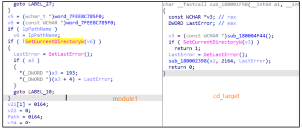 图 module1(左)与Cd_Target.dll(右)代码同源性对比