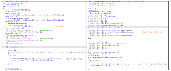 图 module6(左)与RegistryQuery_Target.dll(右)代码同源性对比