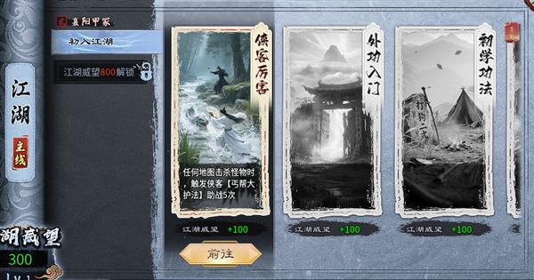 从初出茅庐的虾米到闯荡江湖的大侠,必不可少的就是各种奇闻奇遇,以及功力的成长过程了。《千击武侠沉默》中设计了一个完整耐玩的任务系统,玩家跟着主线一路完成任务可以获得江湖威望,威望一方面可以解锁下一阶段的任务,一方面可以提升威望等级,从而获得属性加成和各种奖励。