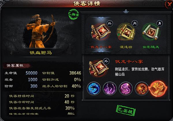之后玩家还会认识擅长控制和治疗的“丐帮执法长老”、可以进行大范围切割伤害、多次全屏弹射以及给敌人上debuff的“铁血驸马”等侠客。随着主线故事逐步推进,越来越多的侠客将会被玩家解锁,成为行走江湖的左膀右臂。