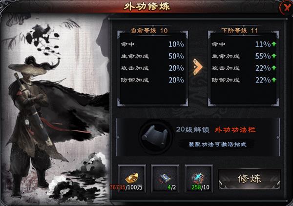门派的功法也有很多种,熟悉武侠小说的玩家对此一定非常了解,游戏中共有内功、外功和身法这三种功法,玩家可以先通过提升内外功修炼去提升功法等级,然后学习装配功法属性,针对自己喜欢的成长路线去进行搭配、修炼来提升属性。