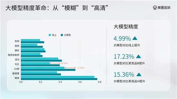 美图宜肤相关负责人表示,美业AI大模型助力美容顾问更专业,消费者的“美丽管理”更系统。同时,期待与行业伙伴携手共建行业标准,搭建“数据-模型-应用”的长期价值,让皮肤检测更精准。