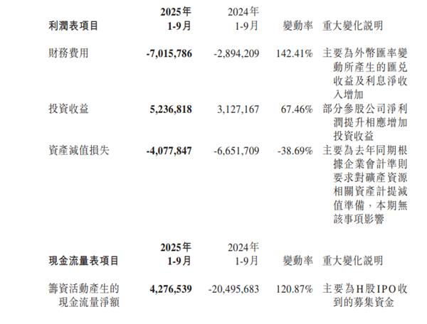 还有个极易被忽视但很关键的细节是,财务费用的逆转,宁德时代前三季度财务费用为-70亿元,报告解释为外币汇率变动带来的汇兑收益及利息净收入增加。意味着公司不仅没付利息,反而靠资金运作赚了70亿。