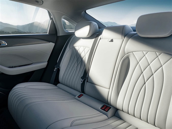 侧面来看,该车一条腰线从前灯眉处直接贯穿至尾灯,搭配车门丰富的线条设计,看上去十分舒展。