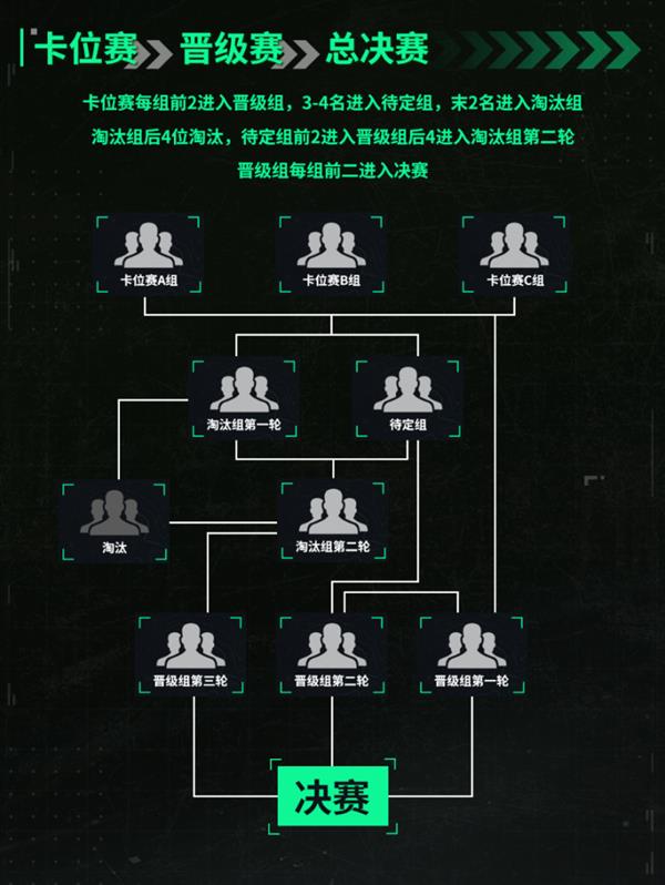 本次赛事的赛程主要分为三部分。一阶段海选赛36进24,参赛队伍将分为三个小组,每组前三直接晋级;第二阶段小组赛24进18,同样是前三晋级。10月21日起海选赛,10月23日至10月25日为小组赛直播,10月26日至10月29日之间为卡位赛直播,10月30日至11月1日是晋级赛,而11月2日将迎来最终的决赛日直播!每场都精彩,绝对不容错过!