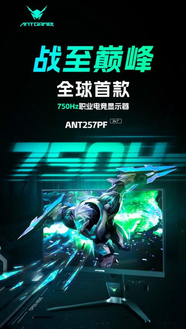 这款蚂蚁电竞ANT257PF是全球首款原生750Hz超高刷电显示器,采用全新的24.1英寸FAST-TN面板,支持DisplayHDR400显示,覆盖95%DCI-P3色域,内置DIC动态模糊消除功能,GTG0.8mm响应时间,1080P分辨率。其恐怖的750Hz刷新率将电竞显示器向千帧顶峰推进了一大步。