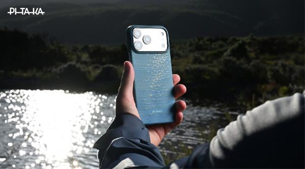 2025年9月,PITAKA发布了iPhone 17系列新品,也正式推出全新Moment系列新纹路——「浮光跃金」,分别有清梦蓝、浮光金两个花色,其适配iPhone 16 Pro系列、iPhone 17全系列。此次PITAKA在编织技术上有了全新突破,浮织工艺升级为浮织工艺2.0,即浮织·光影波纹。浮织工艺2.0通过精准控制每一根纱线的受力,让金色的光在掌心重现。
