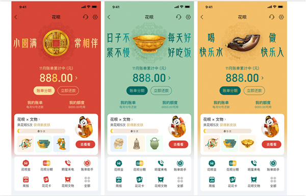 “超喜欢花呗文物皮肤的创意,已经收集了好多款了,陕历博已经上了故宫还会远吗!”这条“许愿帖“获得了大量网友点赞认同。“每次打开都是不一样的吉祥话,心花怒放!”小红书网友的留言道出了许多年轻用户心声。还有文博爱好者晒出截图发布“花呗皮肤还贴心地带了文物介绍,能更好地了解中国传统文化“!
