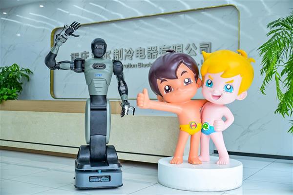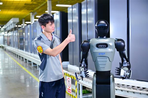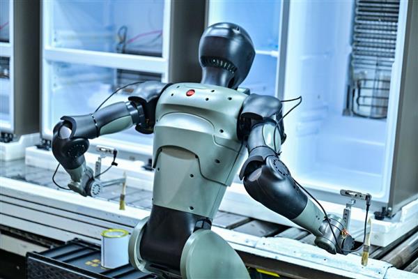 人形机器人不仅能跳舞、打拳,还能进厂干活,成为未来生产力。近日,位于重庆的海尔冰箱互联工厂就引入了新时达人形机器人—新达。它不仅能给冰箱门轴刷润滑油,还能做更复杂的物料搬运和智能巡检。