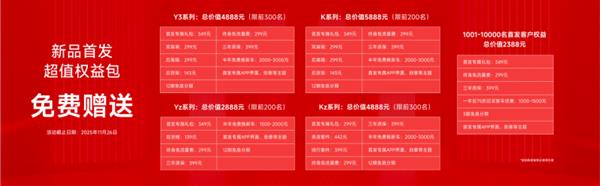为让更多用户能轻松体验首驱的产品,官方同步公布了极具诚意的“首发权益包”。据悉,前300名订购Y3系列的用户可获总价值4888元的专属权益;K系列用户权益总值更高达5888元。所有首发用户均能享受“终身免流量费、三年质保、半年免费换新、分期免息”等多重礼遇,以一步到位的诚意,降低用户享受美好出行体验的门槛。