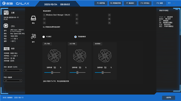同时在测试开始之前,我们将主板BIOS中的内存EXPO以及PBO一键超频打开,全力发挥出这块主板的性能。