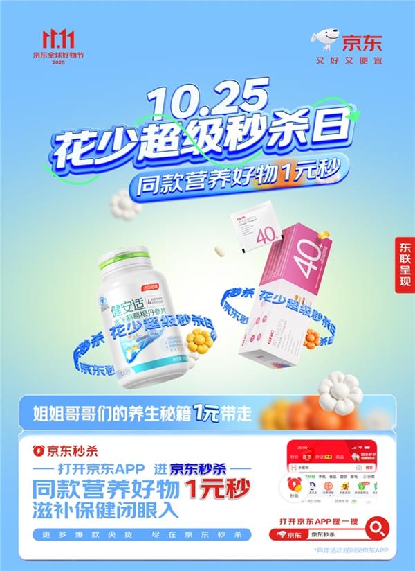 2025京东11.11热度持续攀升,继电玩惊喜日、爱家惊喜日等惊喜日相继开启后,10月25日,京东联合热播综艺《花儿与少年·同心季》(下称《花少7》)打造的“花少惊喜日”正式官宣上线。本次活动将节目旅行场景与健康消费深度融合,不仅带来直播间独家内容爆料,还带来买花少同款抽百万免单、花少同款营养好物1元秒杀、《花少7》同款旅行路线机酒和健康好物1元起拍、试用好物低至1元等多重惊喜,为消费者打造“追剧购物双满足”的消费体验。