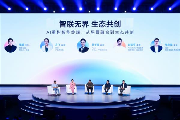 作为大会重要环节,以“AI重构智能终端:从场景融合到生态共创”为议题的圆桌讨论引发广泛关注。由极客公园创始人张鹏主持,聚集荣耀产品线总裁方飞、海尔智慧家庭生态总经理张华军、Plaud合伙人、中国区CEO莫子皓、Kickstarter中国首席战略代表、高级顾问彭奕亨等嘉宾,围绕AI终端的机遇、产品重塑与生态挑战展开深度对话,构建了AI终端生态的“思想碰撞高地”。
