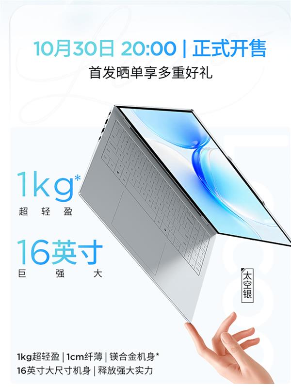 在追求效率与便携的时代,用户对笔记本电脑的要求已不再满足于简单的“轻”或“大”,用户更希望渴望在轻盈机身中容纳更广阔的视野。然而长期以来,“大屏”与“轻薄”似乎难以两全。正是在这一市场诉求下,来酷Air 16以“巨轻薄 巨有料”的姿态横空出世。该产品精准定位追求极致便携与大屏体验的用户,通过将16英寸大屏融入1085g的机身,再搭载高性能的硬件配置、极具竞争力的价格以及完善的品牌服务,重新定义了主流价位大屏轻薄本的至高标准。来酷Air 16于10月30日晚8点正式开售,首发享9折优惠,首发价4999元,到手价不高于4499.1元,部分地区国补可享8折优惠。