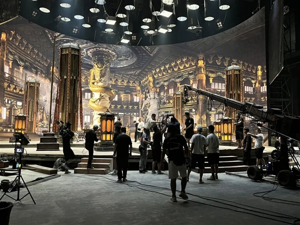 听起来挺玄乎,但说白了就是先把像金龙殿这样的数字资产,用虚拟引擎,比如Unreal Engine,实时渲染出来,然后再把画面投到LED屏幕上。