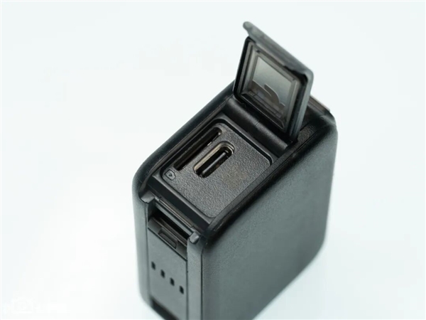 而图传模块不仅自带一块触摸屏,除了能实现实时无线图传和遥控,还能通过触点在 20 分钟内给相机快速补电到 80%,而且还内置了 TF 卡槽,就算自带存储录满也能转到 TF 卡接着录。