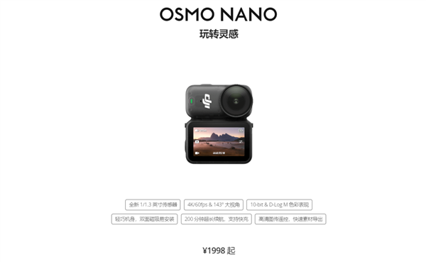 而大疆 OSMO Nano,属于它全新开辟的一条产品线,虽然官方把它定义为 “ 自由视角穿戴相机 ”,但由于它的相机本体依旧保持着紧凑身材,各路博主还是把它归入了 “ 拇指相机 ” 阵营。