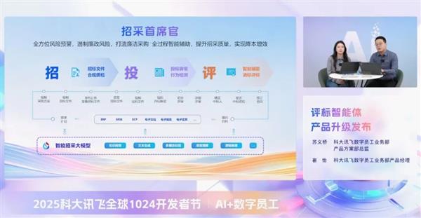 人工智能正经历深层次角色转变,从执行命令与生成内容的AI工具,成长为能理解场景、参与决策并协同创新的“数字队友”。10月27日,2025科大讯飞全球1024开发者节正式发布“AI+数字员工”系列产品——“评标智能体”与“星火行业分析师”。前者在项目评审中实现智能评估与辅助决策,后者则通过多模态洞察与专业研报生成,助力企业精准研判行业风向、驱动高效决策。