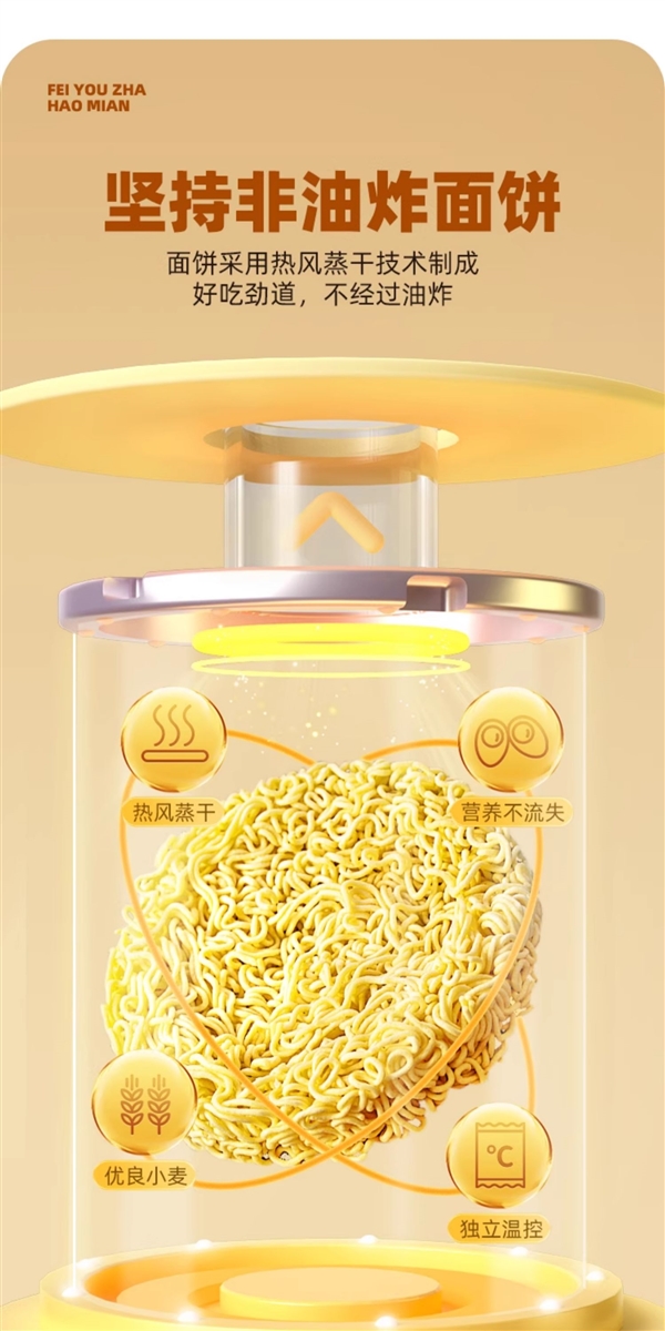 非油炸蒸制面饼,采用成熟热风蒸干技术。