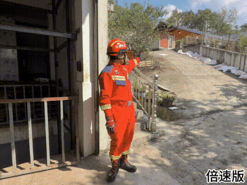 接到119报警后,消防员首先疏散周边围观群众,避免二次事故发生;随后仔细勘察建筑结构,用绳索将货车尾部牢牢固定在自建房两侧的承重柱上,防止车辆进一步倾斜。