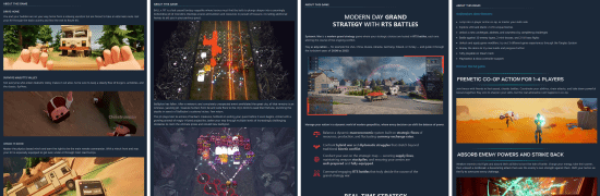 我们还扩展了游戏开发者在说明游戏及展示游戏功能时可以使用的工具和选项。 在许多已更新的商店页面上,“关于游戏”栏目中的图片会更大、质量更高,格式也更有趣。 如果有兴趣想要了解游戏开发者工具的改善情况,可以参阅我们的 Steamworks 博客文章测试版:增加了商店页面的宽度;支持在游戏文字描述中插入视频。