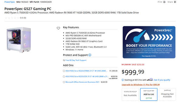 继两天前在Geekbench上曝光后,它如今出现在Micro Center上架的PowerSpec G527游戏PC中。