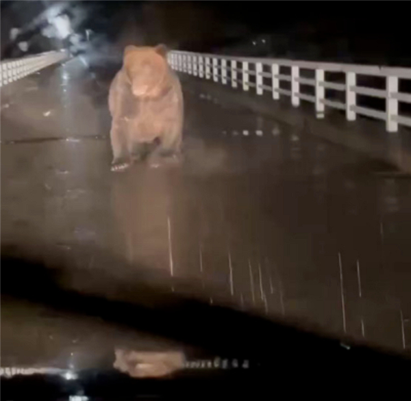 行车记录仪拍摄的视频显示,一头熊直冲向一辆汽车,司机急忙倒车试图逃离,最终没有受伤,但熊在汽车引擎盖上留下爪痕,并导致了凹陷,若是这一巴掌扇到人身上,非死即残。