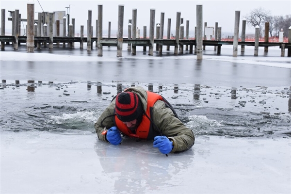 并且,如果羽绒服吸水能力好,落水后的漂浮效果会更差,下面的这位消防员,在穿着羽绒服落水后约12秒,就被拉上了岸。