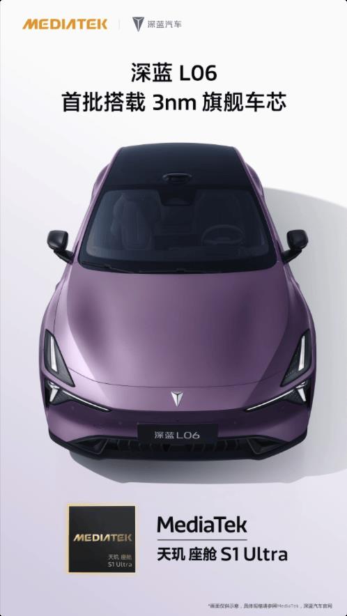 近日,深蓝汽车正式将全新车型深蓝 L06 推向市场。该车定位于长续航磁流变激光智能轿跑,将出众的驾控性能、领先的智能科技和吸睛的外观设计集于一车。依托磁流变悬架、全系标配激光雷达以及超长续航,让用户体验到“特能飞、特有趣、特安心、特好看”的全新出行生活。同时,深蓝 L06 也是首批搭载联发科 3nm 旗舰座舱芯片天玑座舱 S1 Ultra 的车型,车圈新贵联袂芯片顶流,率先掀起新能源智能座舱体验升级的下半场。