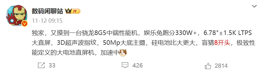 不过配置升级了,价格也会比之前略涨,预计 12GB+256GB 版本 2599 元起。影像方面中规中矩,后置 5000 万像素主摄 + 1200 万像素超广角微距,但核心优势在续航和性能,对比 11 月上市的骁龙 8 至尊中端机,续航能甩一条街,适合追求长续航的朋友。