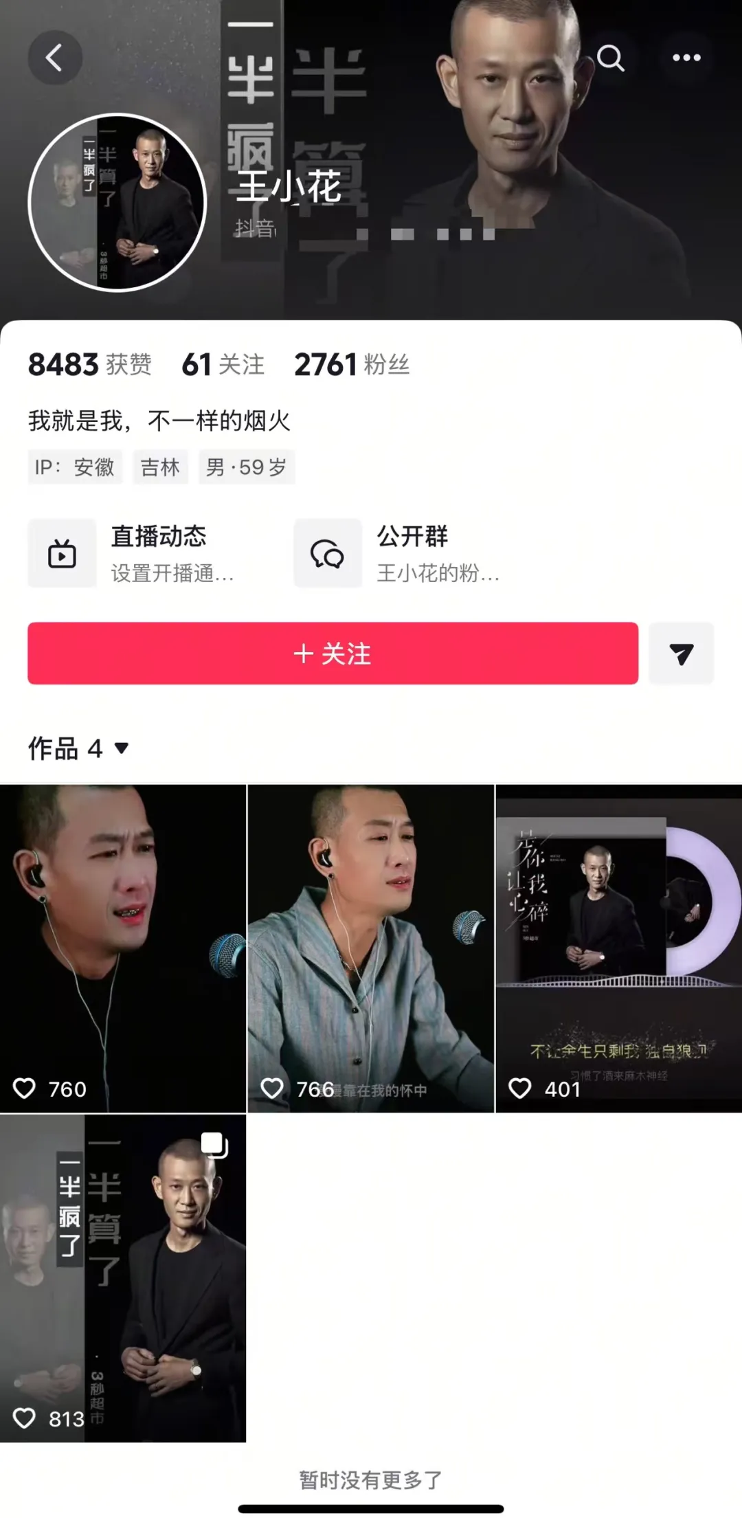 在被封号前,“3秒超市”以“歌手”身份活跃于抖音平台,每日晚8点准时直播,内容以翻唱流行歌曲为主。其账号简介写着“热歌追踪者、歌曲追随者”,营造出草根追梦、热爱音乐的正面形象,吸引超280万粉丝关注打赏。