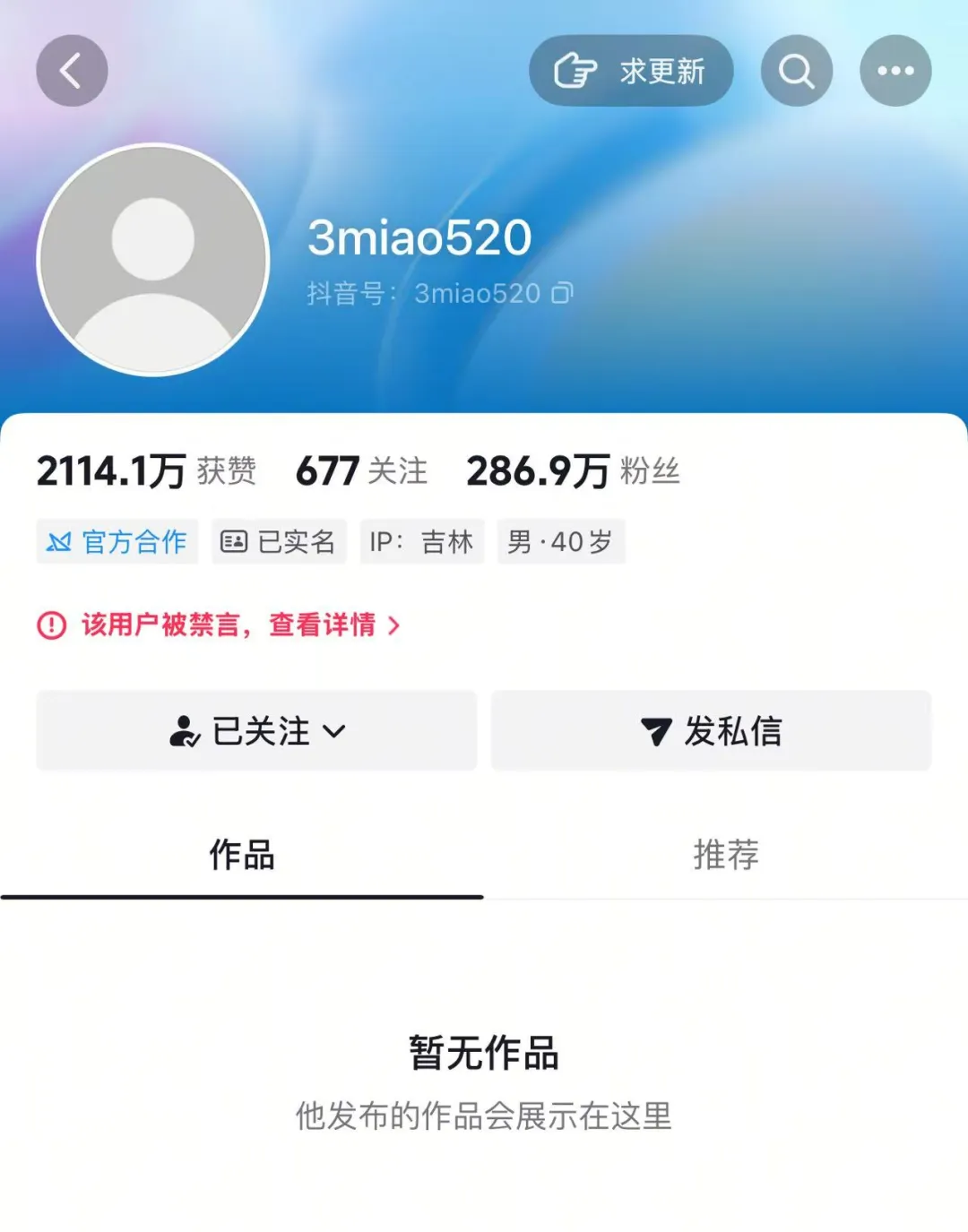 2025年12月27日,拥有287万粉丝的抖音网红“3秒超市”账号突遭平台禁言,其全部视频内容、头像、背景图等信息被清空,主页仅剩空白——这一操作,基本宣告该账号“彻底凉凉”。而就在大号被封的次日,多个疑似其运营的小号迅速浮出水面,发布新作品并已积累数千粉丝,引发网友新一轮举报潮。