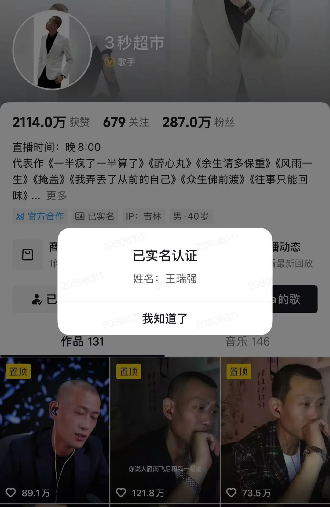 据北京抖音科技有限公司向法院出具的《协助调查回函》显示,该账号注册用户确为“王某强”,平台掌握其真实身份信息。但在此前提下,平台既未对其高风险背景进行评估,也未在账号显著位置标注相关警示,任由其打造“正能量草根歌手”人设,持续收割流量与经济收益。