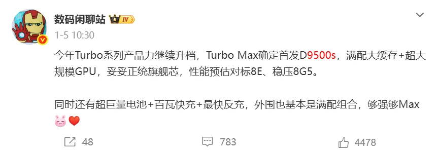 🔋 红米 Turbo 5 Max|预计2299元|9000mAh + 天玑9500s,Turbo系列最强一战