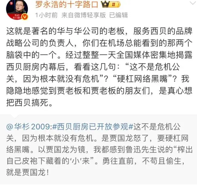 罗永浩曾在直播中暗示:是华与华怂恿贾国龙“干到底”,