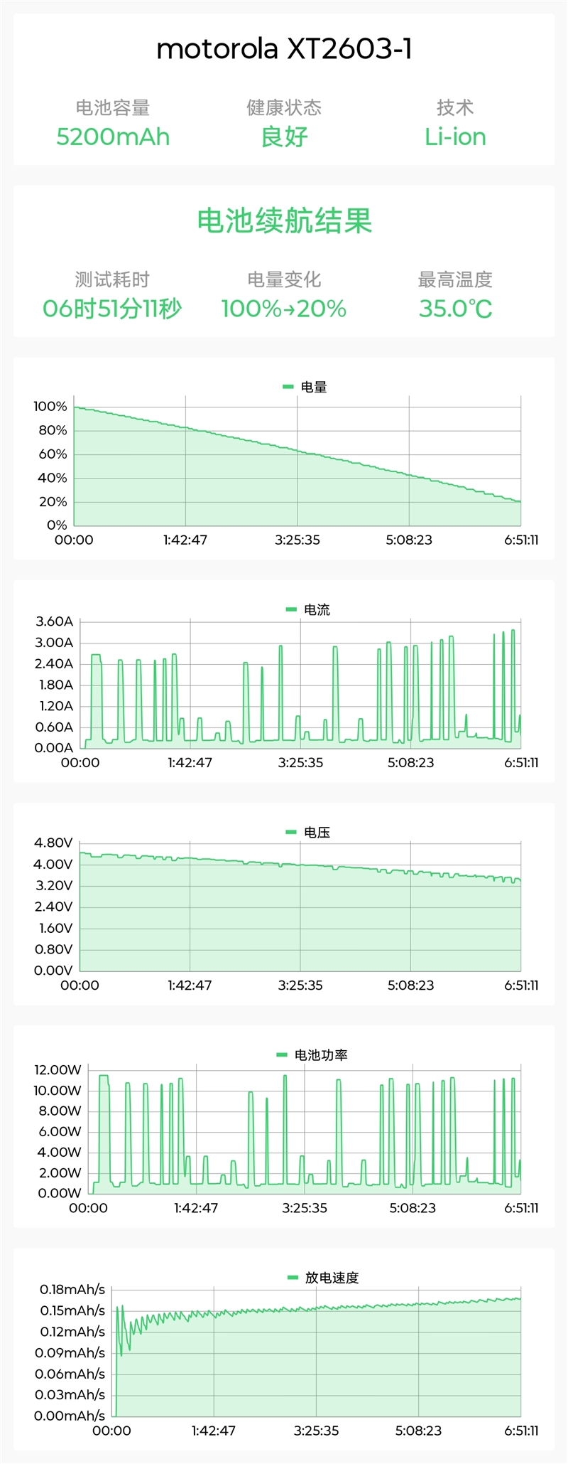 电池狗狗续航测试,从100%电量到20%,持续时间为6小时51分钟,续航方面还需要联想进一步优化。