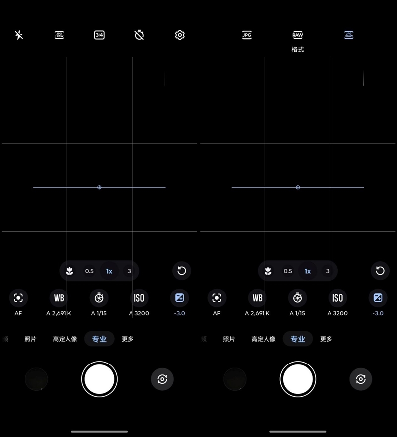 在专业拍摄模式中,不但有相机一般的手动曝光控制功能,还可以手动设置拍摄格式,默认是JPG直出,用户也可以在这里设置为RAW或RAW+JPG,联想moto X70 Air Pro可以直接输出DNG格式的RAW原始照片,给专业用户留下了最宽裕的后期调整空间,一张DNG格式的照片体积可以超过20MB。