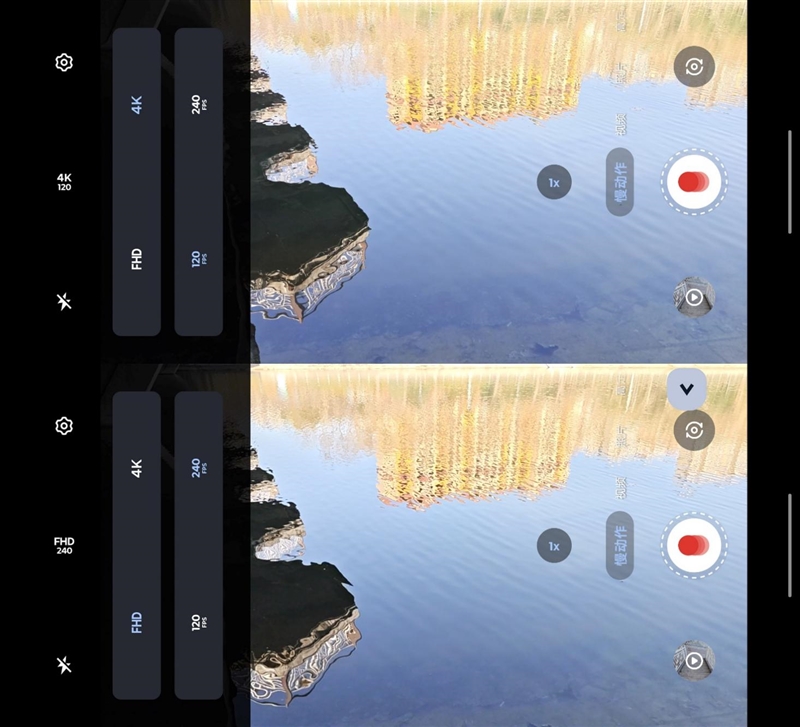 慢动作拍摄拥有一个单独的页面,慢动作拍摄设置也比较简单,只有FHD240Hz和4K120Hz两个选择。