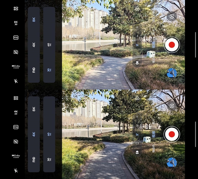 在视频拍摄界面,可以直接选择8K30P和4K60P,拍摄8K视频就是这么简单。
