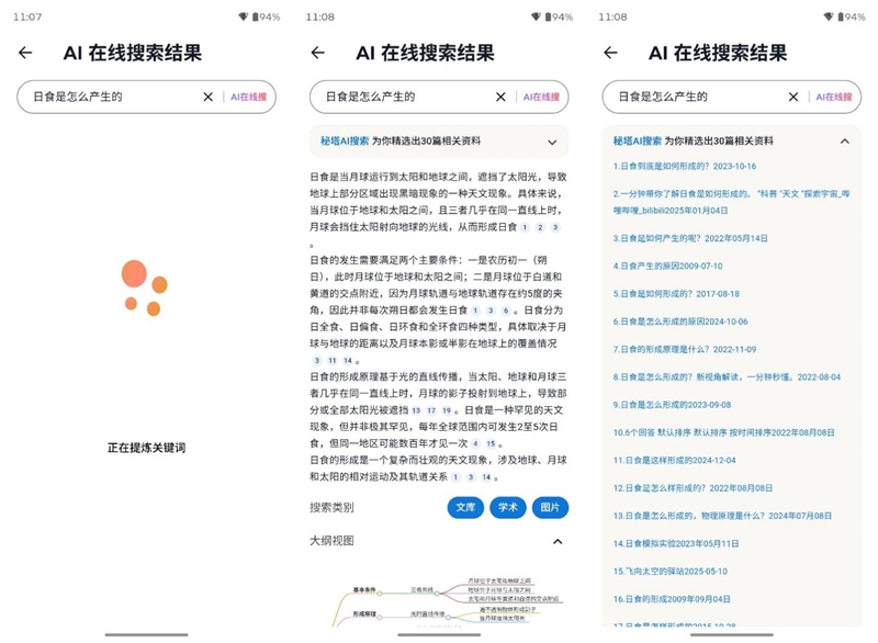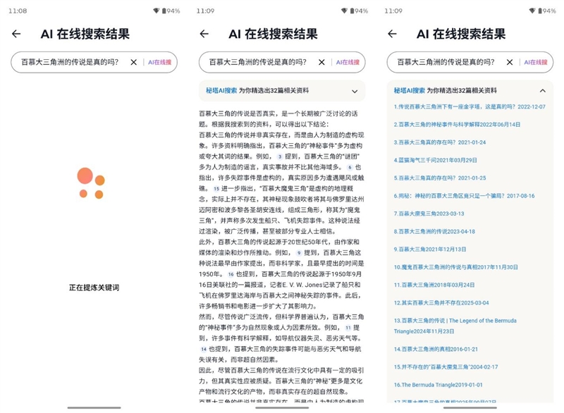 除了长按AI键呼出AI搜索之外,在联想moto X70 Air Pro桌面空白处下滑,也可以直接呼出AI搜索,我们测试向AI搜索以自然语言提问,都得到了非常完善的回答,而且还给出了详细的引用出处,也方便用户进一步检索相关信息。