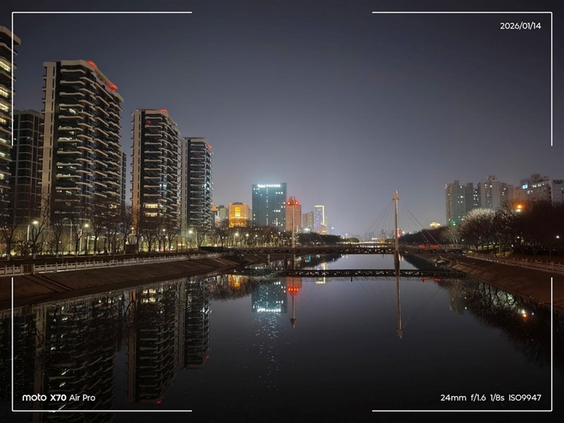 虽然联想moto X70 Air Pro拥有专业的夜景模式,但我们实际测试中,直接使用自动拍摄模式,同样可以拍摄出清晰明亮的夜景,掏出手机立刻拍摄,完全不需要进入菜单选择,随手抓拍更加方便。