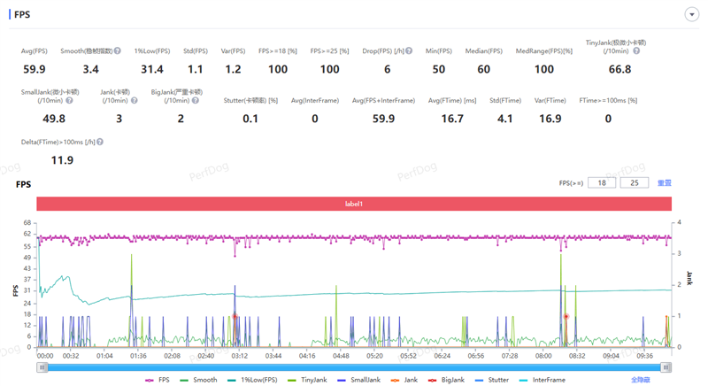 之后我们在《原神》中开启最高画质,关闭动态模糊,在高压场景“须弥城”跑图10分钟,平均帧率59.9,整体略有波动,但最低帧率也有50,运行也十分稳定。