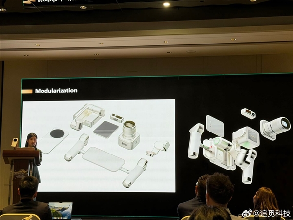 从现场图片来看,这款模块化旗舰支持多种多样的影像配件,包括摄像头、手柄、稳定器等等。
