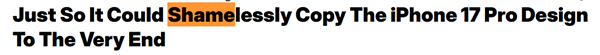 知名科技博主MKBHD拿它和iPhone 17 Pro进行了对比,发现两款手机外观极其相似。