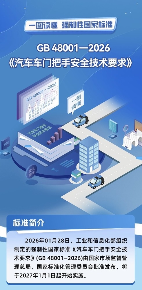 近日,从官方获悉,工信部组织制定的强制性国家标准《汽车车门把手安全技术要求》正式批准发布,并将于2027年1月1日起开始实施。 文件规定了汽车车门把手的技术要求、试验方法和同一型式判定。 文件提到几个关键信息: 1. 外门把手必须要有机械释放能力,纯电子门把手将不再符合规定; 2. 外门把手位置将会限制; 3. 外门把手必须有可供手部施加压力的空间,并且能够承受至少500N的力; 4. 内部把手同样必须拥有机械释放能力,并且要有清晰、显眼的标志指出,不能有遮挡。