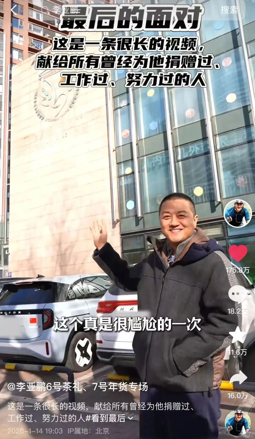 而李亚鹏也没有沉默。1月14日,他在抖音发布了一段31分钟的深度视频,坦诚讲述医院困境与心路历程。曾经被嘲“干啥啥不行”的他,一夜之间赢得全网尊重。
