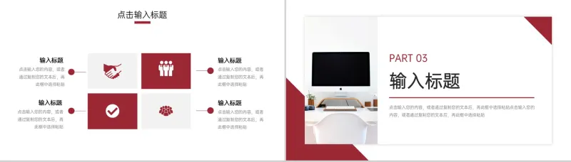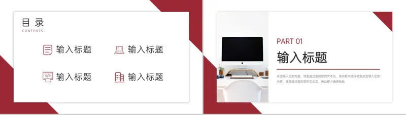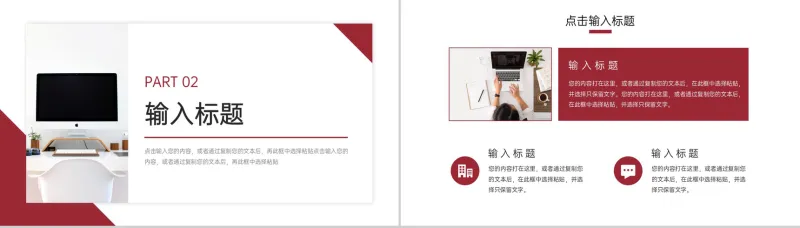 本作品内容为 红色部门年度计划总结汇报PPT模板 ,格式为 pptx ,大小 6.23MB ,页数为 20 , 比例为 16 : 9,请使用 软件Power-Point 打开,作品中的文字与图均可以修改和编辑,图片更改请在作品中右键图片并更换,文字修改请直接点击文字进行修改,也可以新增和删除作品中的内容。