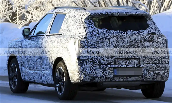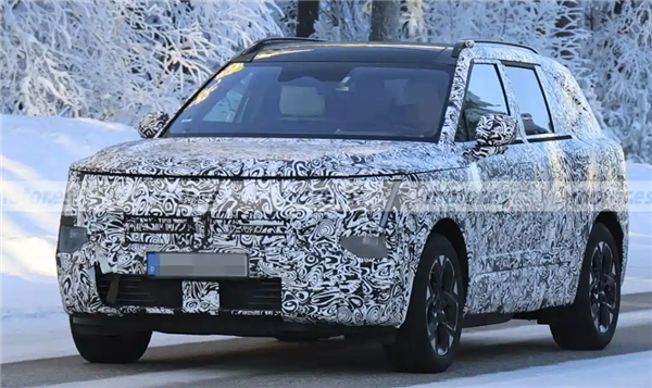 车头部分,伪装下可见分体式灯组的轮廓,上方为细长的日间行车灯,下方是主光源大灯,前保险杠下方有大面积进气格栅,牌照框位于中央位置。
