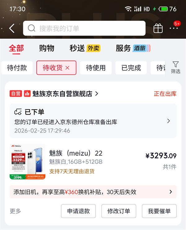 受此消息影响,一位资深魅友果断下单了一台魅族22 16GB+512GB版本,花费3293.09元。 他表示,希望永远可以买到魅族手机,魅族22不是最后一部。