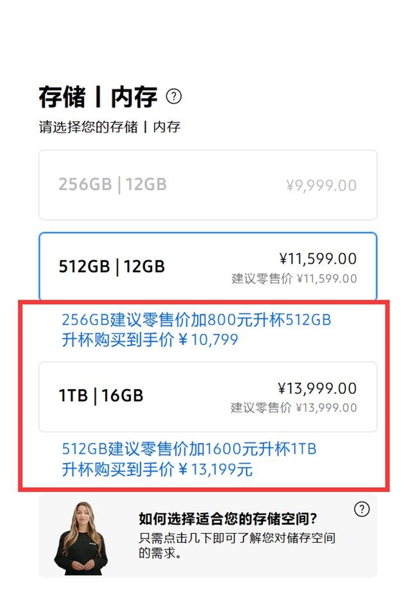对于有海量存储需求的用户,512GB版本加价1600元即可跃升至1TB版本,最终到手价定格在13199元。配色方面,Ultra版本依然提供了包括商城专属色在内的全系六种选择。